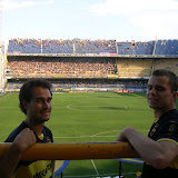 There are no seats in the popular section so everyone is standing and alternating their way up the stair (seats) were bars about chest high that people could lean on. When the three looked for a place to graze in the crowd they picked a spot right in the middle. There were several other animals taking these extremely long pieces of blue and yellow cloth and tying them to the bottom and top leaning bars. At this point it began to rain with incredible intensity which had no effect on anything that was going on. The three visitors to this habitat were right under one of the pieces of cloth which smelled like it had been used as a sweat rag since 1989 and never washed and likely was left here in the stadium over night. They also figured that the flags would move when the kickoff came. This did not happen. Instead everyone around started fighting for a spot on one of these metal leaning bars. They would use the huge cloth to lean forward and stand on the bar. On a bar about 15 feet long there were 15 people holding onto this piece of cloth that was being used by 4 other leaning bars above them while its raining to the point we cannot see the other side of the stadium. The footwear of these acrobats was definitely not adequate to be jumping and screaming while on a bar 4 feet high on a stadium stand that was maybe at a 50 degree slant.